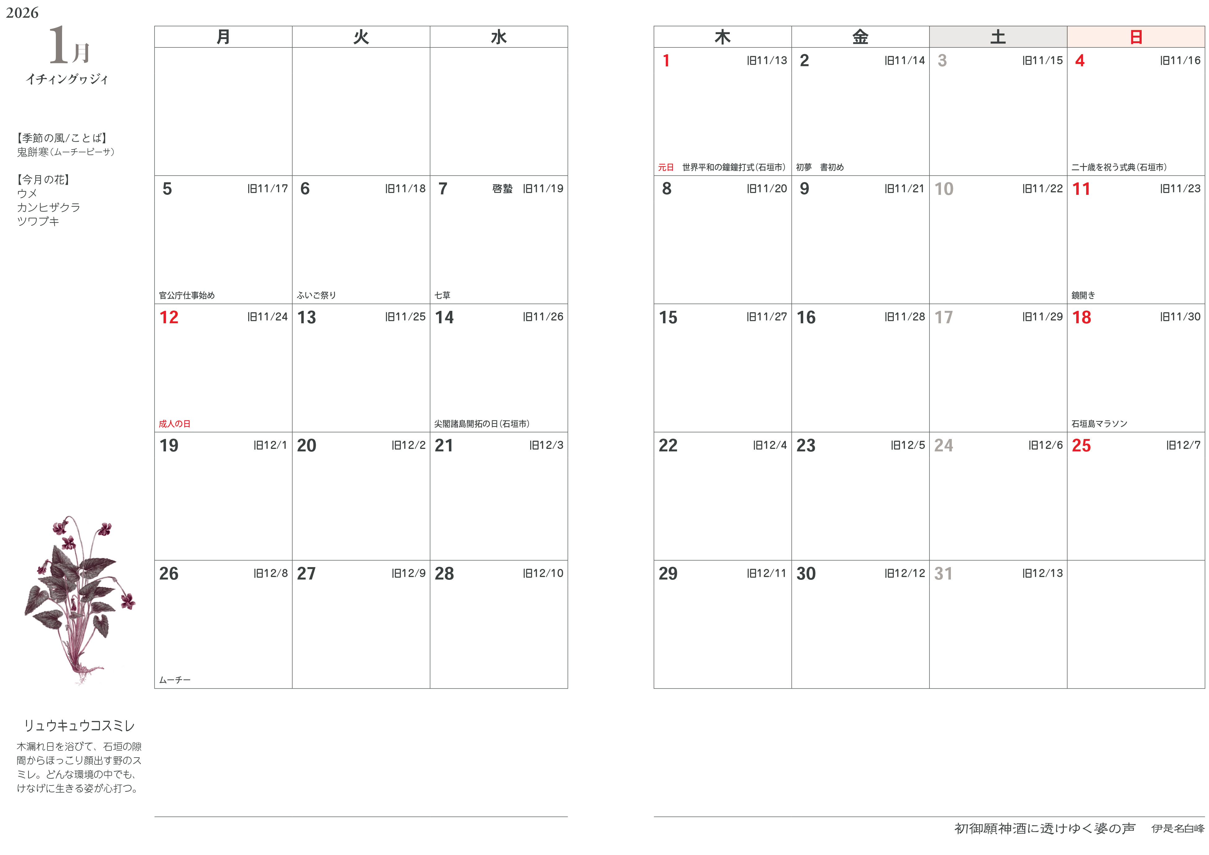 2026年版は初の「竹富島」バージョンを発売!ネット販売は残念ながらございません。 竹富島限定で販売しております。是非機会がございましたらゲットしてくださいね~!