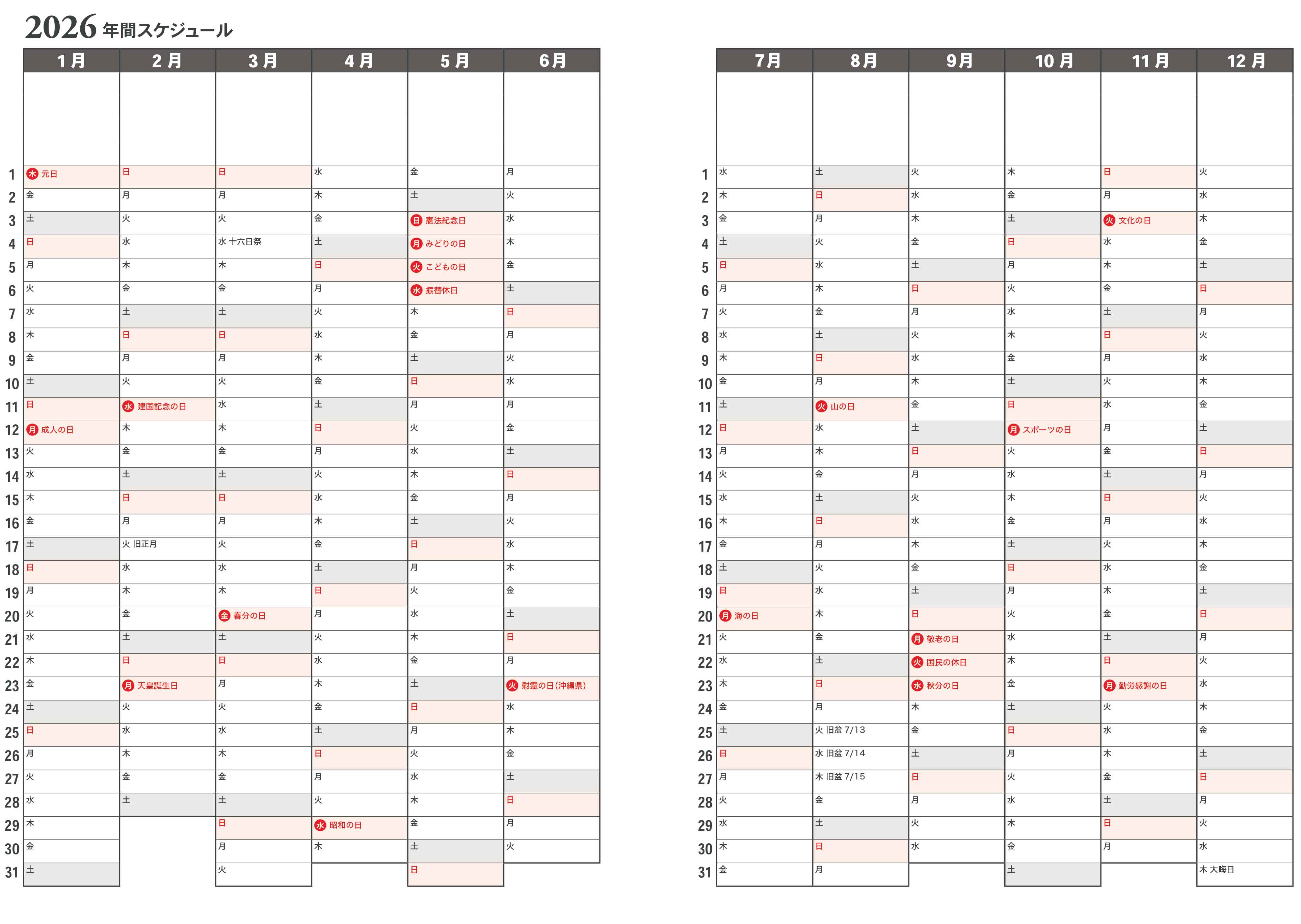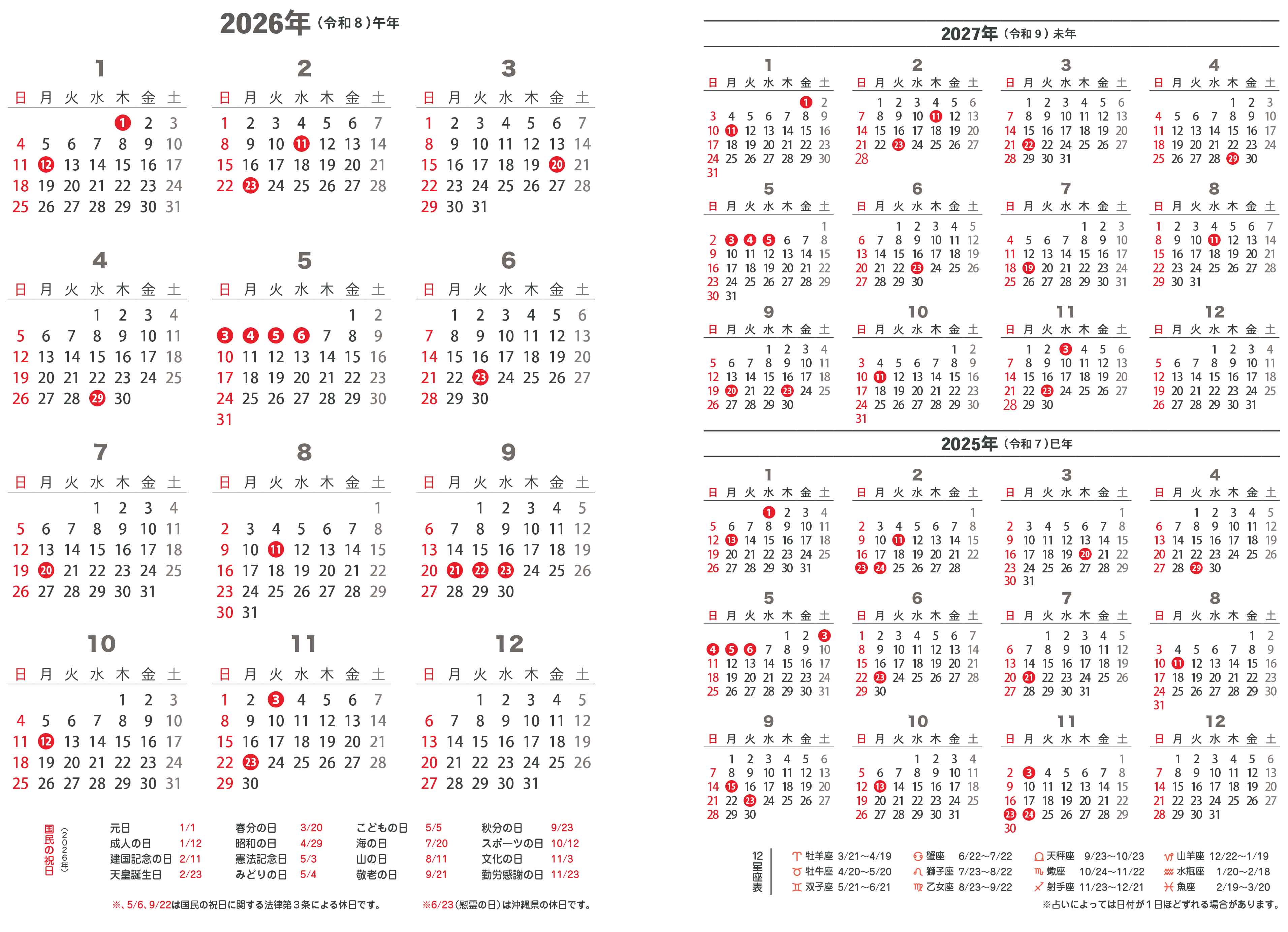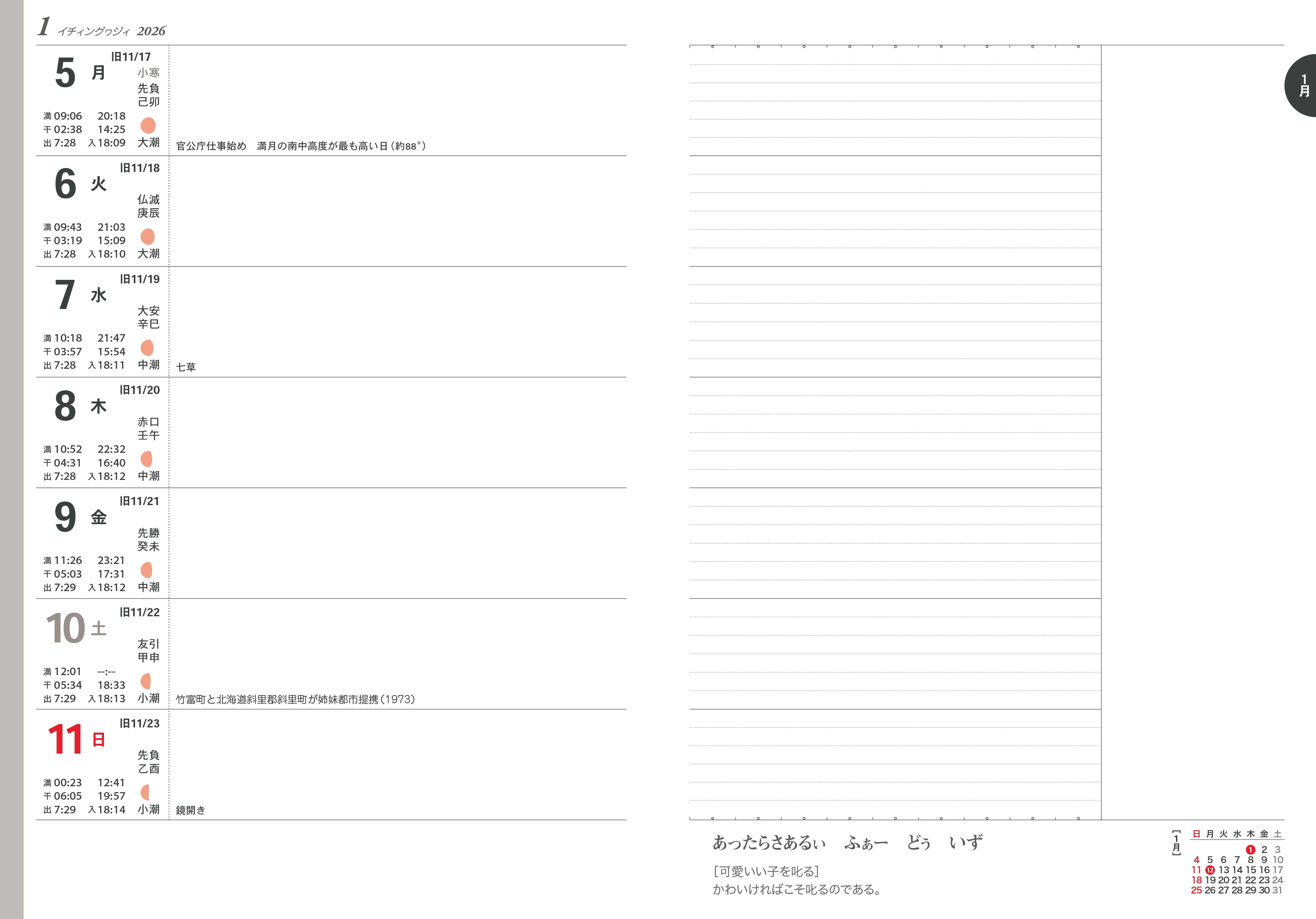 ▼見本画像は2026年版です▼