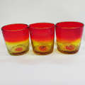 手作りの吹きガラスに彫刻デザインが入ったグラスです。ひび割れ模様が入ったロックグラスは鮮やかな発色で食卓を彩ります。