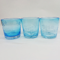 手作りの吹きガラスに彫刻デザインが入ったグラスです。透通るみずいろが八重山の美しい海を思わせる、手作り吹きガラスのロックグラス。一つ一つの風合いの違いをお楽しみいただけます。