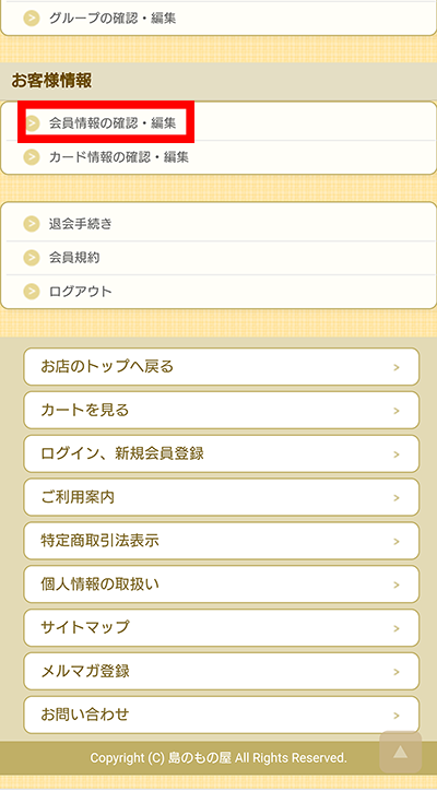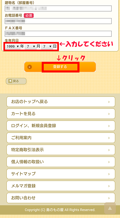 既に会員のお客様は、以下の手順により、お誕生日の登録を行ってください。
